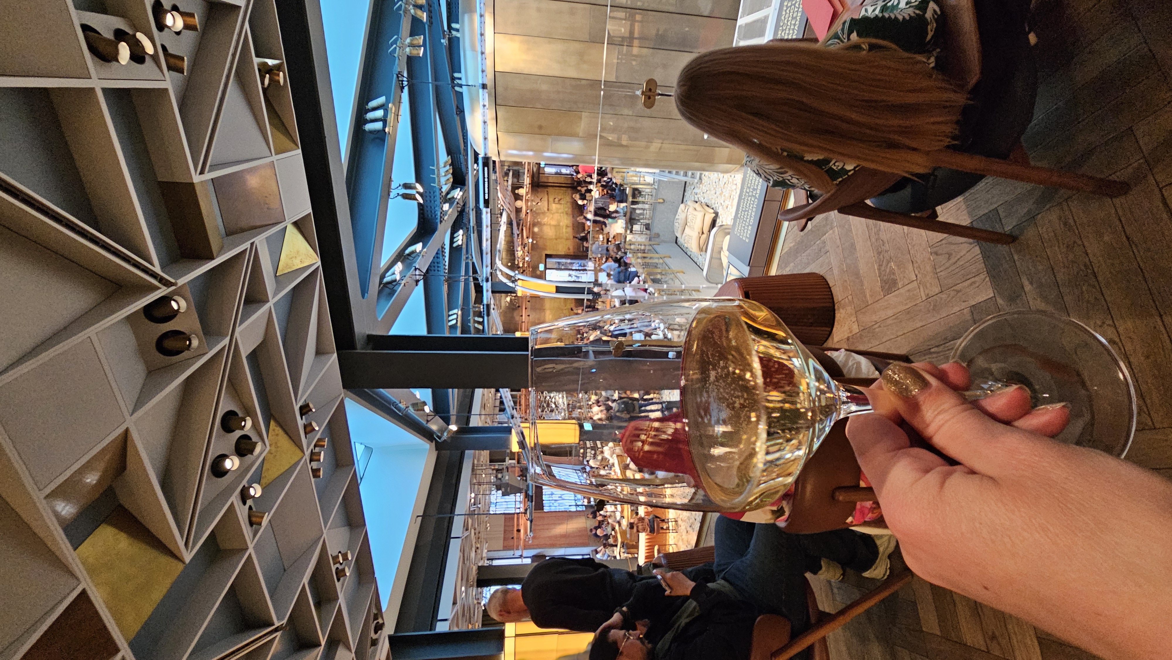 On the first floor at Starbucks there is a great bar for snacks and champagne!